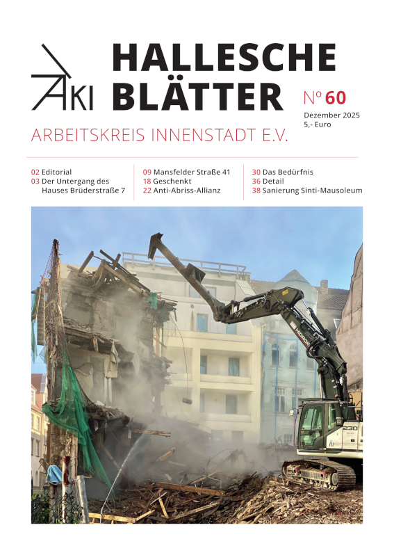 Wenn Sie ein Abonnement für die Halleschen Blätter abschließen, bekommen Sie die Hefte gegen Überweisung von 25,- EUR für vier Ausgaben zugesandt.