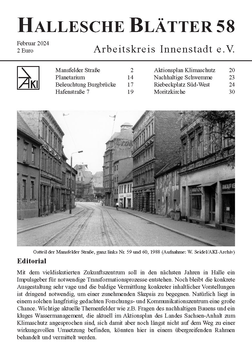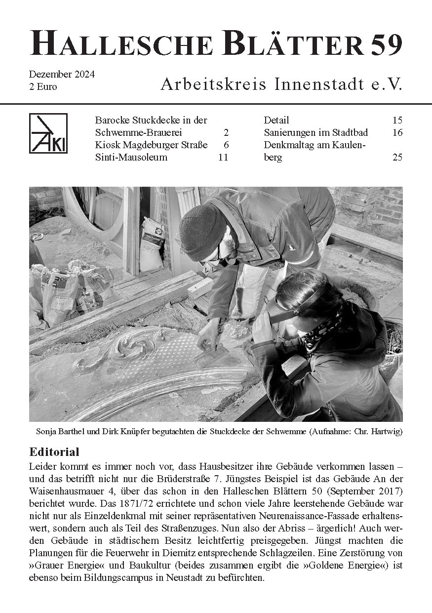 Seit 1996 gibt der Arbeitskreis Innenstadt mit den „Halleschen Blättern“ eine Zeitschrift heraus, die sich zu Themen der Denkmalpflege und Stadtentwicklung in Halle äußert sowie Projekte des Vereins vorstellt. Die Hefte erscheinen mehrmals im Jahr und enthalten Kommentare zu aktuellen Ereignissen wie auch Beiträge zur Hausforschung. Sonderhefte widmen sich speziellen Themen. Ab Nr. 60 (Dezember 2025) erscheinen die Hefte in einem erneuerten farbigen Layout.